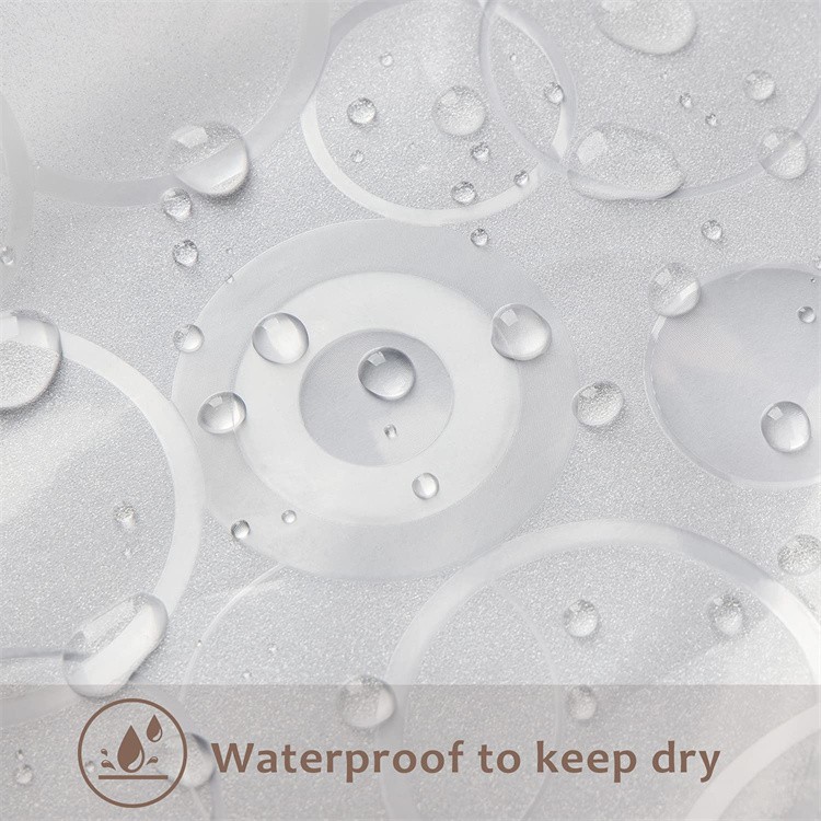 Tissu extrêmement résistant,Rideau de douche en PVCempêche les éclaboussures d'eau à l'extérieur du sol de la zone de bain. D'autre part, notre rideau de douche à texture lisse durera longtemps. Ce rideau de douche en tissu Aqua convient aux environnements riches en humidité.