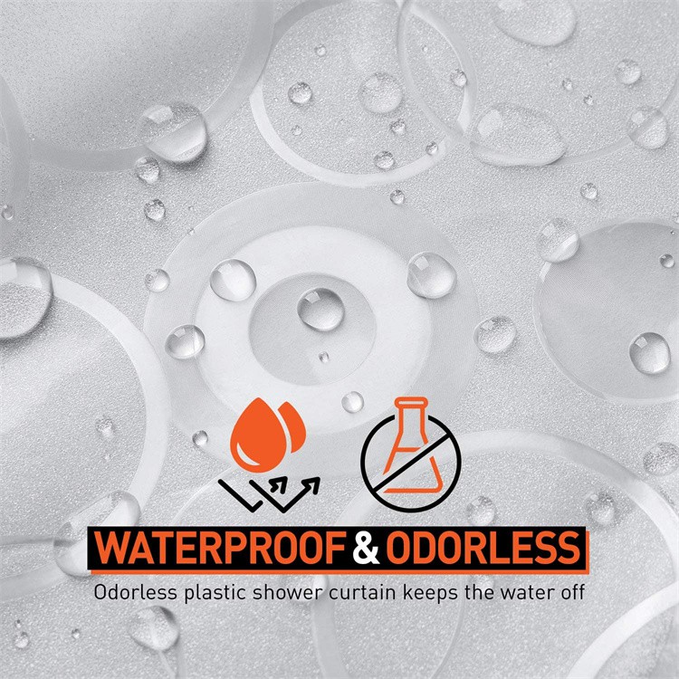 ● La doublure de rideau de douche écologique n'a pas d'odeur de plastique, le meilleur choix pour vous et votre famille, également sans danger pour votre petit bébé.